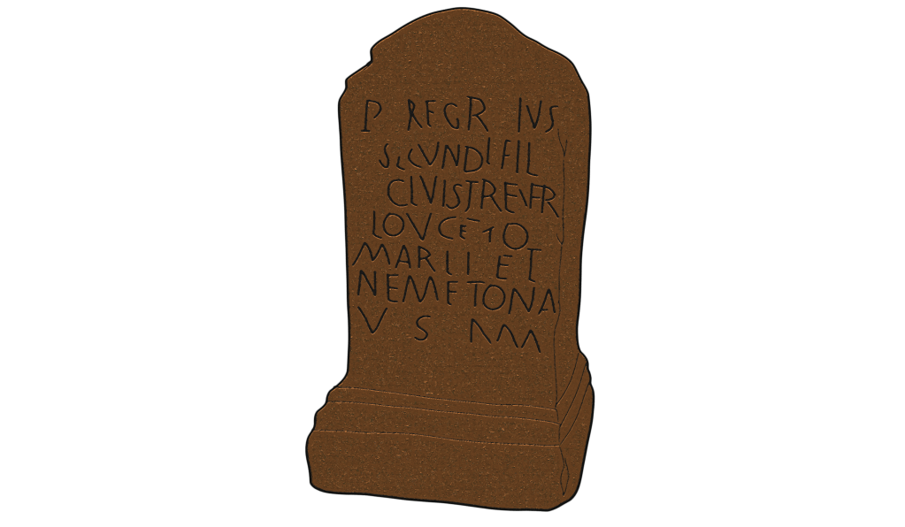 Peregrinus / Secundi fil(ius) / civis Trever / Loucetio / Marti et / Nemetona(e) / v(otum) s(olvit) l(ibens) m(erito)