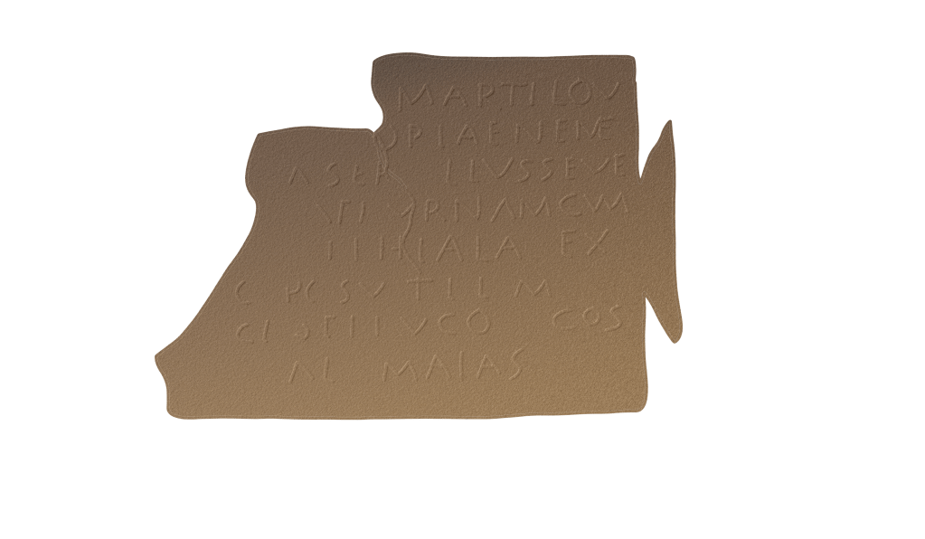 [In h(onorem) d(omus)] d(ivinae) Marti Lou/[cetio et] Victoriae Neme/[tonae] M(arcus) A(urelius) Senillus Seve/[rus b(ene)f(iciarius) l]egati urnam cum / [sortib]us et phiala(m) ex / [vo]to posuit l(ibens) l(aetus) m(erito) / [Grat]o et Seleuco co(n)s(ulibus) / X Kal(endas) Maias