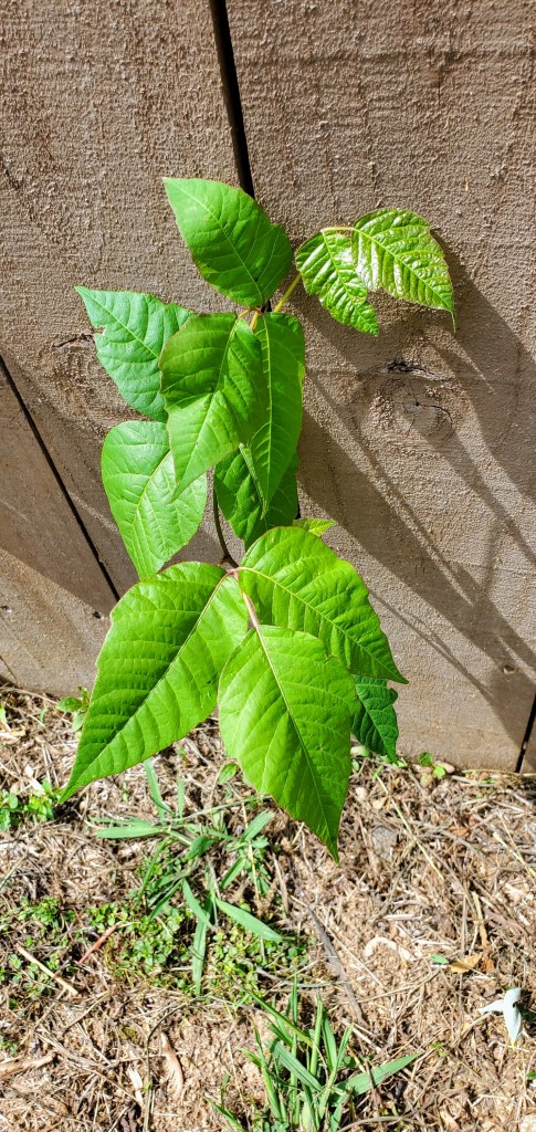 If she is in your way on a fence line or in your Garden, anything like that, one must be cautious so as to not let her touch you. She has oils on her called Urushiol that causes the crazy itchy, blistering rash. Even slight contact, like brushing up against the leaves, can leave the oils on you. These oils can last on your tools for a year or more also. So make sure you are safty ready when trying to remove her.